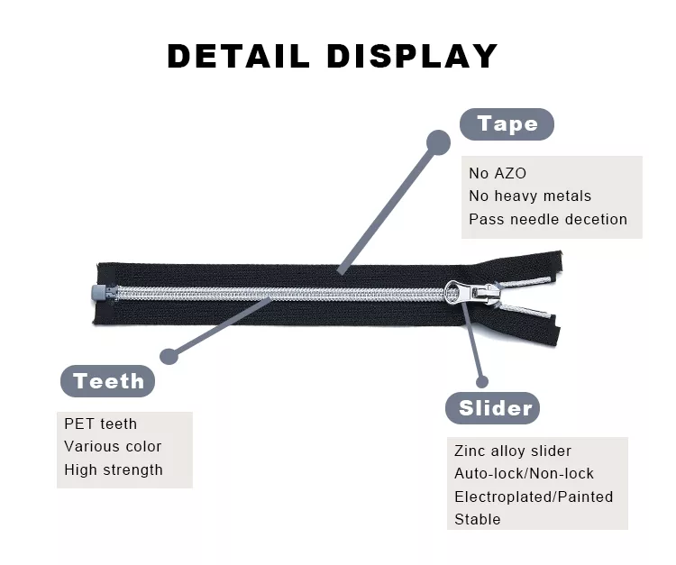 O zíper de náilon reciclado ecológico TRC segue o conceito de fabricação sustentável. Este produto utiliza náilon reciclado e fita de poliéster como matéria-prima, proporcionando ao zíper uma qualidade sólida e confiável, ao mesmo tempo que reduz significativamente seu impacto ambiental.